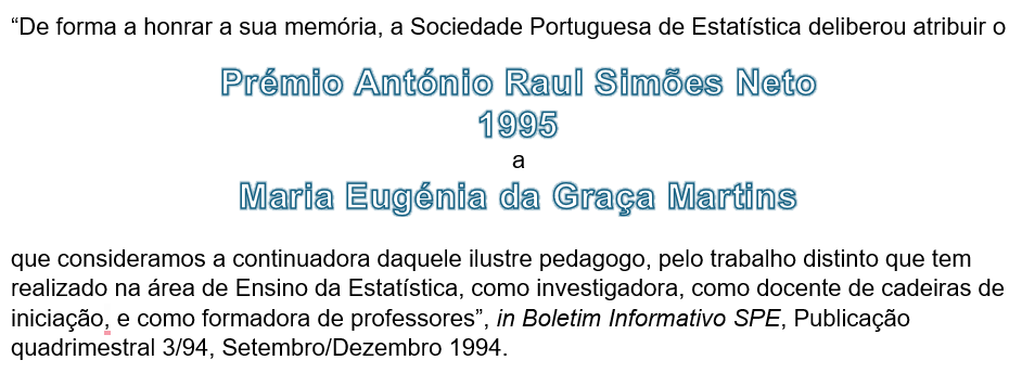 Sessão de homenagemO Ensino da Estatística do Básico ao Secundário, 27 de Janeiro de 2010, organizada pelo Departamento de Estatística e Investigação Operacional, que teve como oradores Luísa Loura, Luís Gouveia, João Pedro da Ponte, Ana Vieira Lopes, Paula Teixeira, Emília Oliveira, Pedro Campos, João Branco, Dinis Pestana (por ordem de apresentação).